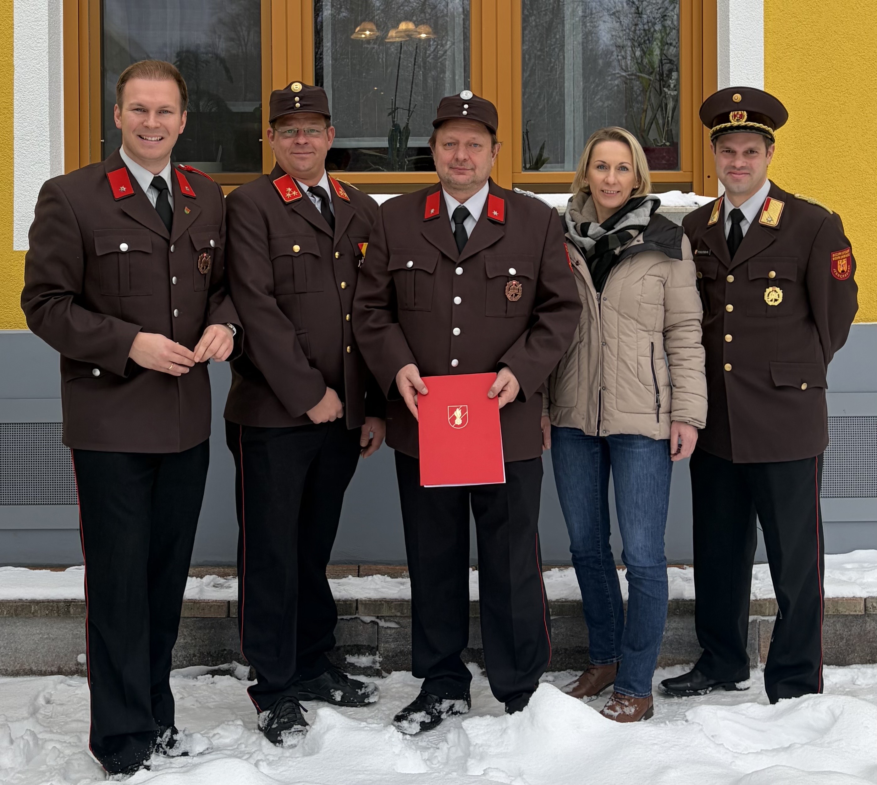 LM Elisabeth Wagner und LM Andreas Wolf wurden jeweils zum Oberlöschmeister befördert. Kommandant-Stellvertreter Christian Halb wurde nach erfolgreich abgeschlossener Ausbildung vom Feuerwehrmann zum Löschmeister befördert.